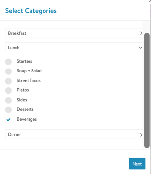 - If you would like to share items in bulk, check off all other beverages when prompted